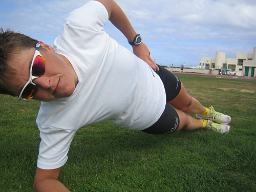 Core stability exercises at Club La Santa. Photo by Rob de Hooge